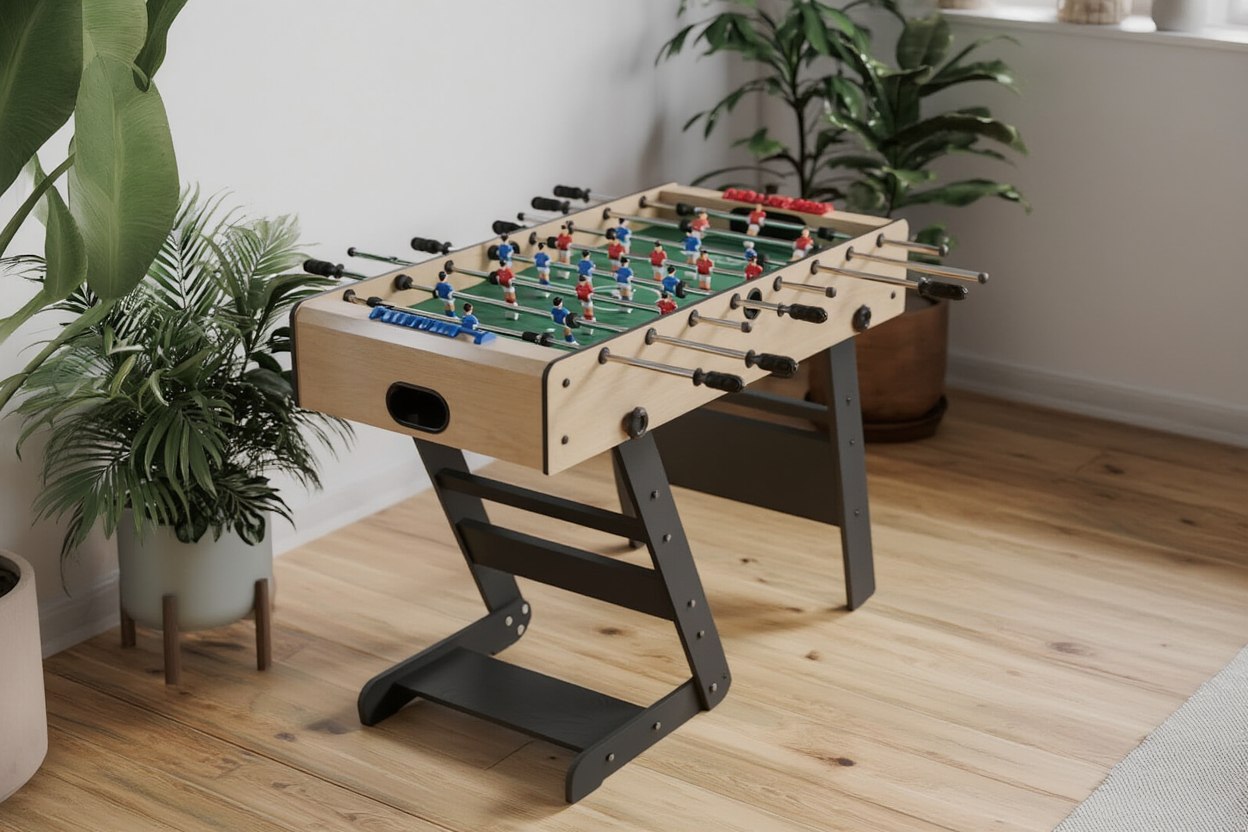 Un babyfoot stable et élégant qui transforme chaque match en moment de partage inoubliable.