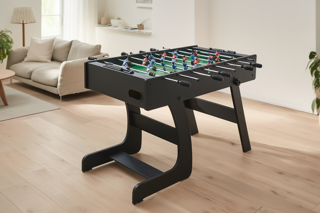 Un babyfoot stable et élégant qui transforme chaque match en moment de partage inoubliable.